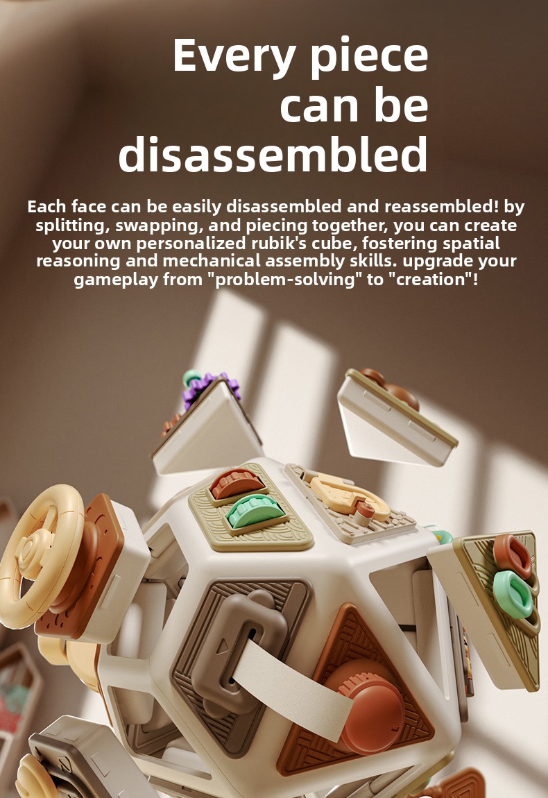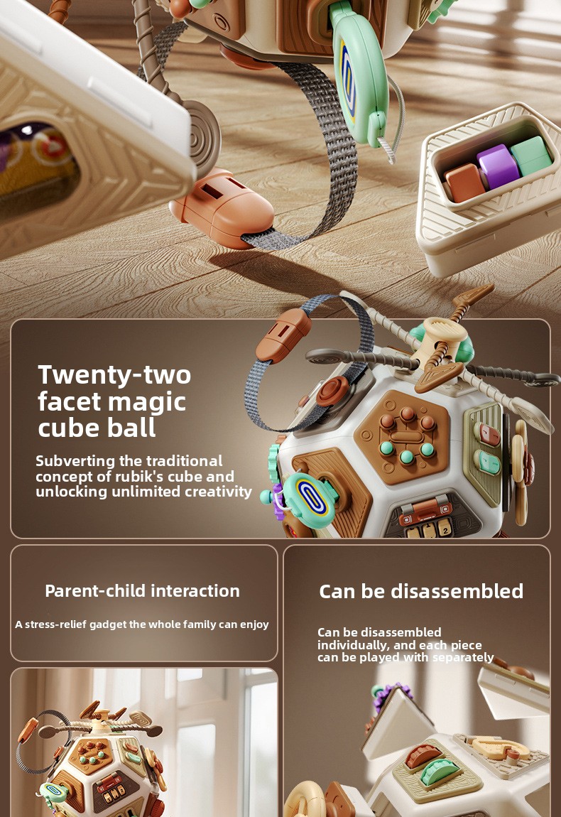 Multifunctional Design: 22-in-1 polyhedral toy with diverse activities for comprehensive early education.