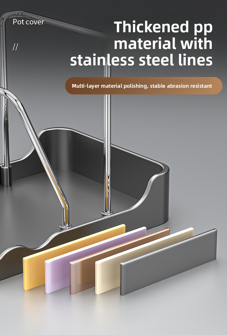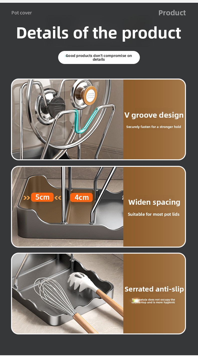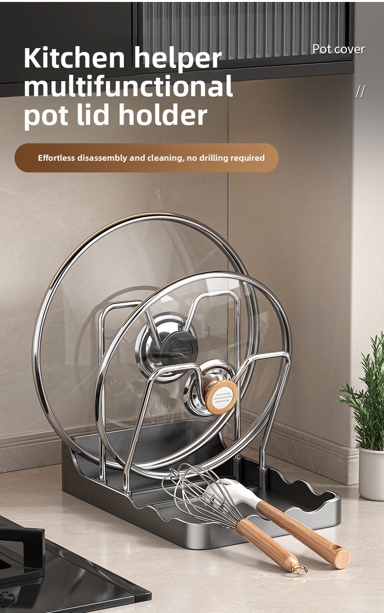 Multi-functional: Accommodates various lid sizes and includes additional storage for spatulas or cloths